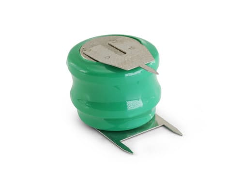 ** Caratteristiche Generali ** Codice dimensione: 2/80H Tecnologia: Ni-Mh N. celle: 2 Ricaricabile: si ** Caratteristiche Elettriche ** Tensione: 2.4V Capacità: 80mAh ** Caratteristiche Meccaniche ** Interasse contatti (C): 10mm Dimensioni: ø15.8mm x 11.6mm Connessioni: pin per PCB