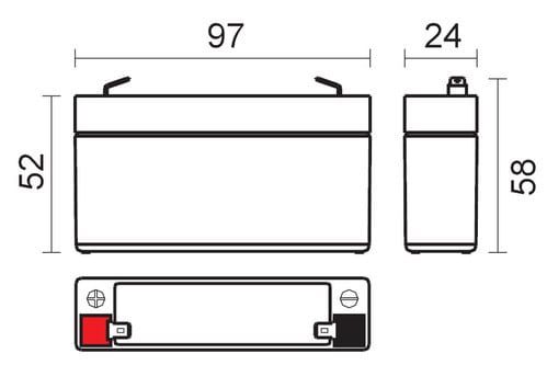 ** Caratteristiche Generali ** Adatto per: UPS Tecnologia: Piombo AGM ** Caratteristiche Elettriche ** Tensione: 6V Capacità: 1.3Ah ** Caratteristiche Meccaniche ** Dimensioni: 24mm x 97mm x 58mm Peso: 0.3Kg Connessioni: faston 4.8mm
