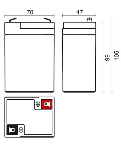 ** Caratteristiche Generali ** Adatto per: UPS Tecnologia: Piombo AGM ** Caratteristiche Elettriche ** Tensione: 6V Capacità: 4Ah ** Caratteristiche Meccaniche ** Dimensioni: 47mm x 70mm x 105mm Peso: 0.67Kg Connessioni: faston 4.8mm