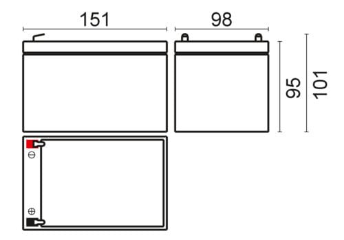 ** Caratteristiche Generali ** Adatto per: UPS Tecnologia: Piombo AGM ** Caratteristiche Elettriche ** Tensione: 12V Capacità: 12Ah ** Caratteristiche Meccaniche ** Dimensioni: 98mm x 151mm x 101mm Peso: 3.5Kg Connessioni: faston 6.3mm