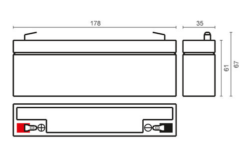 ** Caratteristiche Generali ** Adatto per: UPS Tecnologia: Piombo AGM ** Caratteristiche Elettriche ** Tensione: 12V Capacità: 2.2Ah ** Caratteristiche Meccaniche ** Dimensioni: 35mm x 177mm x 68mm Peso: 0.84Kg Connessioni: faston 4.8mm