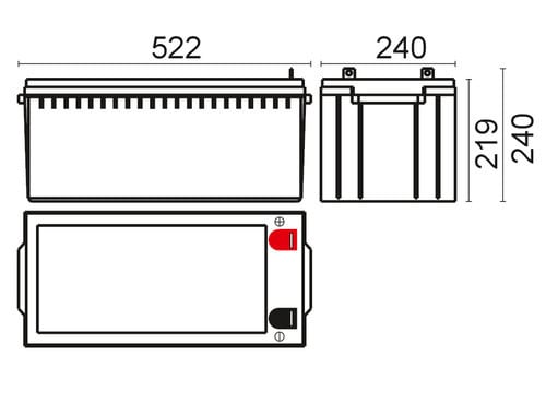 ** Caratteristiche Generali ** Adatto per: UPS Tecnologia: Piombo AGM ** Caratteristiche Elettriche ** Tensione: 12V Capacità: 200Ah ** Caratteristiche Meccaniche ** Dimensioni: 240mm x 522mm x 240mm Peso: 60Kg Connessioni: a vite M8