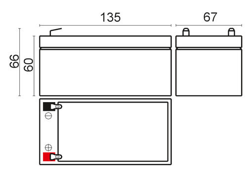 ** Caratteristiche Generali ** Adatto per: UPS Tecnologia: Piombo AGM ** Caratteristiche Elettriche ** Tensione: 12V Capacità: 3.4Ah ** Caratteristiche Meccaniche ** Dimensioni: 67mm x 135mm x 66mm Peso: 1.3Kg Connessioni: faston 4.8mm