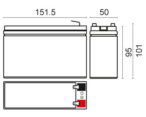 ** Caratteristiche Generali ** Adatto per: UPS Tecnologia: Piombo AGM ** Caratteristiche Elettriche ** Tensione: 12V Capacità: 5Ah ** Caratteristiche Meccaniche ** Dimensioni: 52mm x 151.5mm x 100mm Peso: 1.65Kg Connessioni: faston 4.8mm