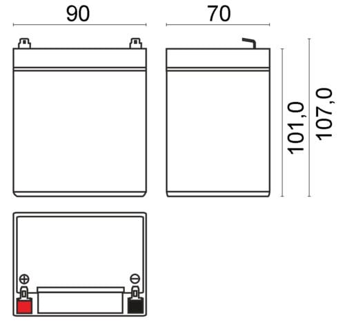 ** Caratteristiche Generali ** Tecnologia: Piombo AGM ** Caratteristiche Elettriche ** Tensione: 12V Capacità: 5Ah ** Caratteristiche Meccaniche ** Dimensioni: 90mm x 70mm x 107mm Peso: 1.65Kg Connessioni: faston 4.8mm