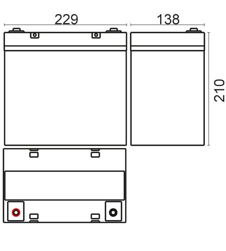 ** Caratteristiche Generali ** Adatto per: UPS Tecnologia: Piombo AGM ** Caratteristiche Elettriche ** Tensione: 12V Capacità: 55Ah ** Caratteristiche Meccaniche ** Dimensioni: 229mm x 138mm x 210mm Peso: 16.3Kg Connessioni: a vite M6