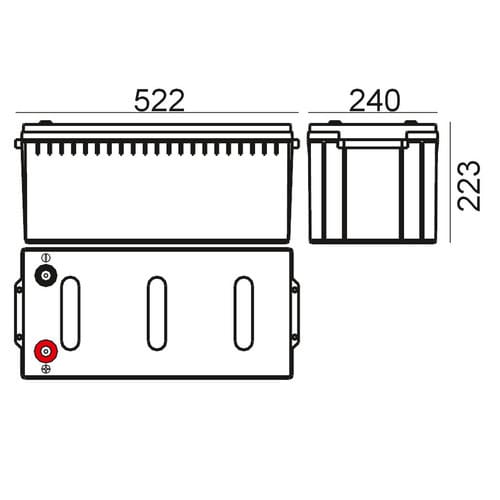 ** Caratteristiche Generali ** Adatto per: Sistemi fotovoltaici ad isola, Impianti telecomunicazioni, UPS Tecnologia: Piombo Gel ** Caratteristiche Elettriche ** Tensione: 12V Capacità: 200Ah ** Caratteristiche Meccaniche ** Dimensioni: 240mm x 522mm x223mm Peso: 61.5Kg Connessioni: a vite M8
