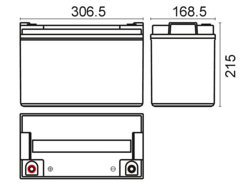 ** Caratteristiche Generali ** Adatto per: UPS Tecnologia: Piombo AGM ** Caratteristiche Elettriche ** Tensione: 12V Capacità: 100Ah Potenza (15min 1,67V/cella 25°C): 380W Corrente di carica massima: 30A Corrente di scarica massima: 1000A ** Caratteristiche Meccaniche ** Dimensioni: 306mm x 168mm x 210mm Peso: 30Kg ± 3% Connessioni: a vite Temperatura di immagazzinamento: -20 / 60°C Temperatura di lavoro: 0 / 50°C
