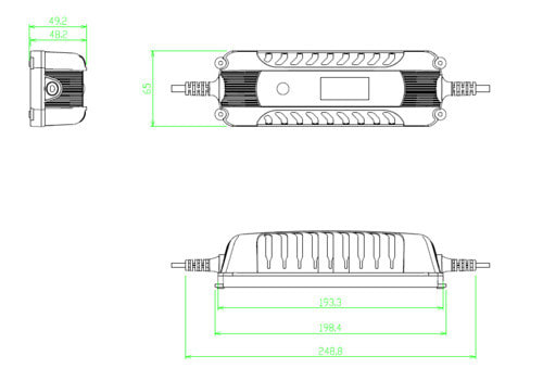 Il caricabatterie serie Procharge è un dispositivo intelligente progettato per caricare batterie PB - AGM - GEL - LiFePO4 a 4 fasi di carica con il semplice tocco di un pulsante. Tutte le fasi sono controllate da un microprocessore per caricare le batterie di motociclette e automobili che rileva le condizioni della batteria per fornire la giusta corrente e tensione alla batteria (caratteristica di carica) e che darà il miglior effetto sulla carica e garantirà la massima durata della batteria. L’ampio display retroilluminato visualizza una serie di funzioni di sicurezza, tra cui l'inversione di polarità e la protezione da cortocircuito, mantengono al sicuro sia l'utente che il veicolo. ** Caratteristiche Generali ** Tecnologia: switching Costruzione: desktop Tipo regolazione: CV Classe isolamento: II Adatto per batterie: Piombo AGM, GEL, Litio LifePO4 Grado Protezione: IP65 ** Caratteristiche Elettriche ** Tensione d'ingresso: 220‑240Vac Frequenza: 50Hz Corrente d'uscita: 1000 - 4000mA Tensioned'uscita: 6 - 12V Protezioni: corto circuito, inversione ** Caratteristiche Meccaniche ** Dimensioni (LxWxH): 65 x 49 x 193mm Raffreddamento: passivo Materiale contenitore: Plastico Colore: Nero Connessioni: connettore intercambiabile Connettori: Pinze,Occhielli ** Caratteristiche Termiche ** Temperatura di lavoro: 0/40°C ** Caratteristiche tecniche ** - Tensione di ingresso: 220-240Vac - Frequenza tensione ingresso: 50Hz - Consumo energetico standby: ≦2.0W - Massima potenza in ingresso: ≦75W - Massima corrente in ingresso: ≦0.75A - Corrente di autoscarica: ≦1mA - Efficienza: >78% - Display: LCD retroilluminato - Tipo di batteria: STD: Batterie Piombo SLA (Sealed Lead Acid) AGM: Batterie Piombo AGM (Absorbed Glass Mat) GEL: Batterie Piombo con elettrolita GEL Li: Batterie Litio Ferro Fosfato LiFePO4 - Tensione nominale: 6V / 12V (Piombo), 12.8V (LiFePO4) - Selezione tensione: Manuale - Corrente di carica: STD/GEL: 7.1Vdc 1A; 14.2Vdc 1A/4A AGM*: 14.4Vdc 4A LI: 14.5Vdc 4A - Capacità manutenzione Batterie Pb : C.MIN 5Ah - C. MAX (Carica) 120Ah C.MIN 5Ah - C.MAX (Mantenimento) 180Ah - Capacità manutenzione Batterie Li : C.MIN 1Ah - C. MAX (Carica) 120Ah C.MIN 1Ah - C.MAX (Mantenimento) 180Ah - Tipo / Capacità batteria: Chimica LI - Corrente 1A - Capacitàcarica 1-30Ah min-max - Capacità mantenimento 1-45Ah min-max Chimica LI - Corrente 4A - Capacità carica 4-120Ah min-max - Capacità mantenimento 4-180Ah min-max Chimica STD/AGM - Corrente 1A - Capacità carica 5-30Ah min-max - Capacità mantenimento 5-45Ah min-max Chimica STD/AGM - Corrente 4A - Capacità carica 20-120Ah min-max - Capacità mantenimento 20-180Ah min-max - Pulsante selezione e carica: 6V: STD 1A 12V: STD 1A/4A, AGM 4A, LI 4A - Ricarica: 4 fasi smart (Inizializzazione - Carica principale - Assorbimento - Mantenimento) - Modalità Ricarica per Climi freddi: Sì (
