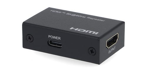 L’extender ripetitore HDMI™ consente di potenziare il segnale HDMI™ tramite cavo HDMI™ fino a 10m a 8K UHD 60 Hz, YUV 4:4:4. Lo speciale design consente ai circuiti attivi di essere alimentati dal cavo HDMI™ stesso che dispone di 5 volt di alimentazione attraverso il cavo HDMI™. Inoltre i connettori placcati in oro aiutano a migliorare il segnale e a ridurre le interferenze. ** Estensione distanza: ** - fino a 10m (5m di ingresso, 5m di uscita) a 8K 60Hz, YUV 4:4:4 - fino a 13m (8m di ingresso, 5m di uscita) a 4K 60Hz Nota: quando il cavo HDMI non riesce ad assorbire energia sufficiente dalla sorgente video utilizzare il cavo USB in dotazione in abbinamento ad un alimentatore (non incluso) da 5V1A o 5V2A o 5V3A. ** Caratteristiche ** Tipologia: Ripetitore Tipo Extender: HDMI® Compatibile 3D: Si Compatibile 4K: Si Topologia collegamento: 1:1 Profondità colore: 12bit/canale Risoluzione massima: 8K UHD @ 60Hz Risoluzioni supportate: 480i @ 50Hz, 480i @ 60Hz, 480p @ 50Hz, 480p @ 60Hz, 576i @ 50Hz, 576i @60Hz, 576p @ 50Hz, 576p @ 60Hz, 720p @ 50Hz, 720p @ 60Hz, 1080i @ 50Hz, 1080i @ 60Hz, 1080p @ 50Hz, 1080p @ 60Hz Funzioni aggiuntive: Deep color, HDMI®, CEC Installazione: Plug-and-play Interfaccia di controllo: Nessuna Supporto HDCP: HDCP 2.3 Supporto formati audio: LPCM 7.1, DTS, Dolby Digital, DTS-HD Master Audio, Dolby True HD ** Caratteristiche Elettriche ** Tipo Alimentazione: Alimentatore Indicatore/i led di stato: No ** Caratteristiche Meccaniche ** Grado di protezione: IP20 Temperatura di lavoro: 0 / 50°C ** Installazione ** Montaggio: Desktop