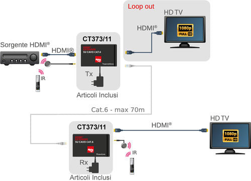ALPHA ELETTRONICA SR - ALPCT373/11 EXTENDER HDMI CAVO 1XCAT.6 TMDS CON IR