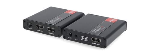 L'extender CT373/11 è un dispositivo in grado di estendere la lunghezza dei cavi HDMI utilizzando un singolo cavo Cat.6 e include una unità trasmettitore (Tx) e una unità ricevitore (Rx). ** Specifiche ** - Coppia di moduli plug-and-play, TX + RX - Estensione su singolo cavo CAT.6 IEEE-568B - Installazione plug and play, nessun driver o software richiesto - Risoluzioni supportate: 480i@60Hz, 480p@60Hz, 576i@60Hz, 576p@60Hz, 720p@50/60Hz, 1080i@50/60Hz, 1080p@30/50/60Hz, 1280x960, 1280x800, 1280x768, 1680x1050, 1360x768, 1366x768, 1600x900, 1980x1080, 1024x768, 800x600 - Distanza di trasmissione del segnale: - max 70m 1080p@60Hz (utilizzando cavo Cat.6/6A/7 AWG24). - Supporta trasmissione segnali IR bidirezionale, 20-60kHz ** Caratteristiche ** Tipologia: Trasmettitore+Ricevitore Tipo Extender: HDMI® Distanza Extender: 70m Compatibile 3D: no Compatibile 4K: no Topologia collegamento: 1:1 Profondità colore: 12bit/canale Funzioni aggiuntive: HDMI®, HDR, IR, Loop-Out Installazione: Plug-and-play ** Specifiche HDMI ** - Blu-ray e HD DVD in Full HD (1080p) - Supporta 1080p HDR (YUV4:4:4), HDCP 1.4 - Larghezza di banda fino a 10.2Gbps totali ** Connessioni ** Trasmettitore - Connettore HDMI (Ingresso) - Connettore HDMI (Uscita) - Connettore IR (Ingresso) - Connettore IR (Uscita) - Connettore RJ45 Ricevitore - Connettore HDMI (Uscita) - Connettore RJ45 - Connettore IR (Ingresso) - Connettore IR (Uscita) - Connettore Jack Audio 3,5mm ** Contenuto confezione ** 1x Trasmettitore 1x Ricevitore 2x Alimentatori 5Vdc 1A 1x Cavetto Ricevitore IR 1x Cavetto Trasmettitore IR