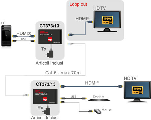 ALPHA ELETTRONICA SR - ALPCT373/13 EXTENDER HDMI CAVO 1XCAT.6 CON USB
