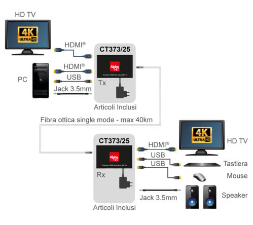 ALPHA ELETTRONICA SR - ALPCT373/25 EXTENDER 4K60HZ HDMI KVM FIBRA OTTICA