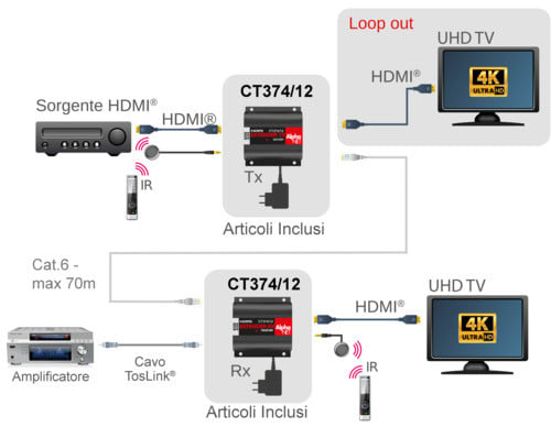 ALPHA ELETTRONICA SR - ALPCT374/12 EXTENDER HDMI 2.0 4K 70M CON IR