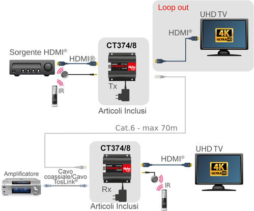 ALPHA ELETTRONICA SR - ALPCT374/8 EXTENDER HDMI2.0 4K 70M CON IR