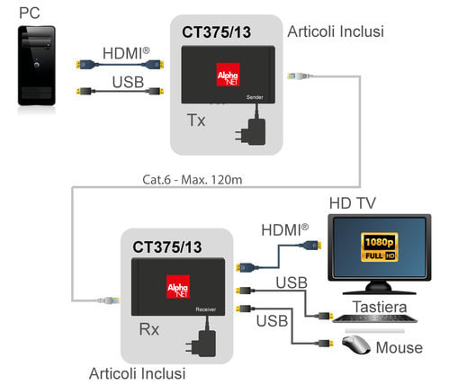 ALPHA ELETTRONICA SR - ALPCT375/13 EXTENDER HDMI OVERIP 1N USB KVM 120M
