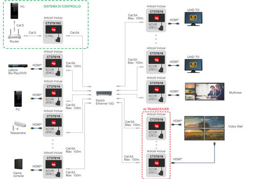 Il controller CT375/16C è un controller Video over IP utilizzato per controllare e gestire prodotti IP, abbinamento ideale per CT375/16. Supporta doppie porte di rete 1G, che possono realizzare l'isolamento della doppia rete della rete di controllo e della rete di distribuzione video multicast. Supporta anche i controlli Web GUI/TCP/RS-232/IR/GPIO, la funzione POE e il pass through del segnale IR. ** Caratteristiche ** Tipologia: Controller Topologia collegamento: 1:N Funzioni aggiuntive: LAN ** Specifiche ** - Compatibile con i protocolli HTTPS, SSH, SFTP - Interfaccia di controllo della Web GUI integrata, supporta operazioni Drag & Drop - Supporta l'anteprima dell'immagine - Supporta video, audio, RS-232, IR, controllo KVM e gestione del sistema distribuito - Doppia porta di rete (la porta VIDEO LAN supporta la funzione POE) per isolare controlli e reti multicast. - Supporta il controllo tramite porta LAN/RS-232 e il controllo centrale di terze parti - Supporta la ricezione del segnale IR (jack audioda 3,5 mm, livello 12V) - Porte di controllo GPIO a 4 canali (livello opzionale 5V/12V) - Molteplici protezioni dei circuiti, protezione contro i fulmini e design ESD - Progettazione del sistema affidabile, garantendo lavoro continuativo 24h/7, stabilitàed affidabilità ** Contenuto confezione ** 1x Controller Video over IP 1x Cavo ricevitore IR 20kHz-60kHz 12V (1.5 metri) 1x Cavo Blaster IR (1.5 metri) 2x Connettore Phoenix 3-pin 3.81mm (Maschio) 1x Connettore Phoenix 6-pin 3.81mm (Maschio) 2x Staffe di montaggio 4x Viti di montaggio (KM3*6) 1x Alimentatore 12Vdc 1A