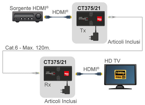 ALPHA ELETTRONICA SR - ALPCT375/21R RICEVITORE PER EXT.CT375/21 1X CAT6 120M