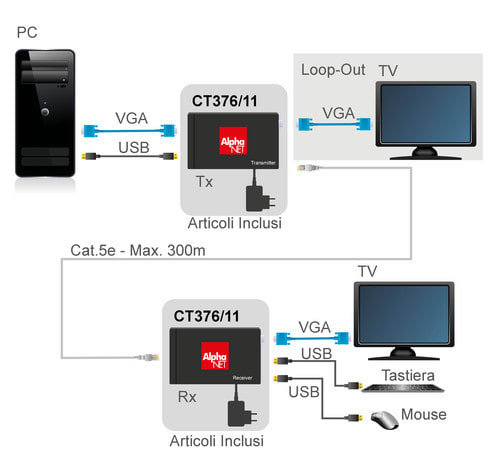 ALPHA ELETTRONICA SR - ALPCT376/11 EXTENDER VGA-USB KVM 300M CAT.5E/6