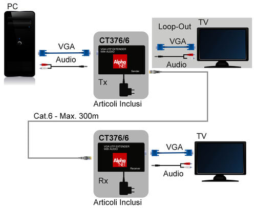 ALPHA ELETTRONICA SR - ALPCT376/6 EXTENDER VGAAUDIO 1X CAT6 300M