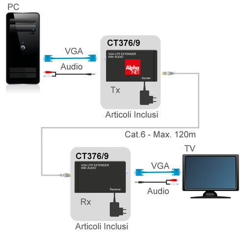 ALPHA ELETTRONICA SR - ALPCT376/9R Receiver for CT376/9 extender VGA - 1920x1080 - Audio - Over IP (1:N) - cavo Cat.5e/6 - 120 m