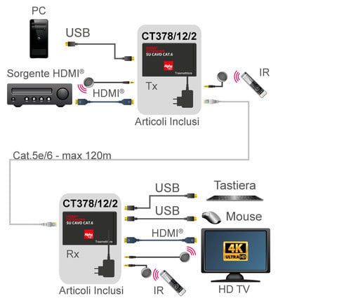 ALPHA ELETTRONICA SR - ALPCT378/12/2 EXTENDER HDBASET HDMI2.0B 4K60HZ USB KVM