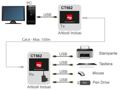 ALPHA ELETTRONICA SR - ALPCT562 EXTENDER 4 PORTE USB 2.0 FINO A 150M