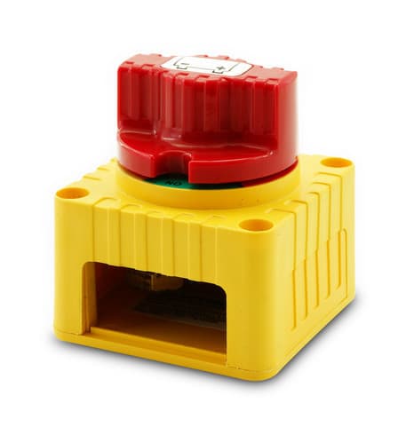 ** Descrizione ** Interruttore per disconnettere batterie 12/24V da carichi in corrente continua. Pomello rimovibile Dadi M10 in rame Dimensioni: 68x68x74mm Portata: 300A @12V carico continuo, 900A picco per 5 secondi. 150A @24V carico continuo, 450A picco per 5 secondi. ** Caratteristiche Generali ** Attuatore: Chiave Materiale attuatore: Plastica Stato dei contatti: ON/OFF Tensione massima: 12V Corrente massima: 300A