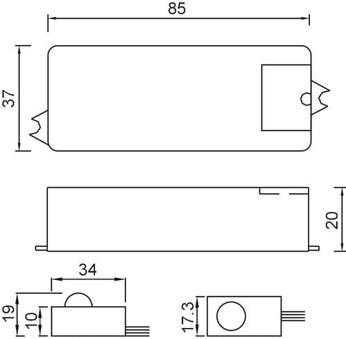 ** Caratteristiche ** Interruttore on-off con sensore di movimento PIR (Passive infrared sensor) con il quale è possibile controllare l'accensione automatica di nastri led, lampade e faretti funzionanti a tensione costante (12, 24 oppure 36Vdc). ** Sensore ** Distanza di lavoro: 0,5m - 3m Angolo di lavoro: 120° Sensibilità: non modificabile Tempo di accensione: 45s ** Caratteristiche Generali ** Funzione: Controller Adatto per: Monocolore Metodo di controllo: PIR ** Caratteristiche Elettriche ** Tipo regolazione: Tensione costante (CV) Tensione d'ingresso: 12/24/36V Tensione d'uscita: come ingresso Tipo di uscita: morsetti Corrente/Ch: 8A n. canali: 1 Potenza nominale (12V): 96W Potenza nominale (24V): 192W ** Caratteristiche Meccaniche ** Lunghezza:82mm Larghezza: 33mm Altezza: 20mm Grado di protezione: IP20 Materiale corpo: Plastica Colore corpo: Bianco ** Caratteristiche Termiche ** Temp. di funzionamento: -10 / 40°C ** Note ** - Non allungare o modificare il cavo del sensore. Ogni modifica al cablaggio del sensore invalida la garanzia. - L'alimentatore dovrà essere scelto in funzione del tipo di carico led utilizzato per tensione e corrente. - Utilizzare un alimentatore con potenza nominale maggiore rispetto al carico led da alimentare (circa 30%).