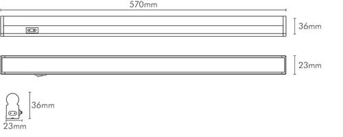 Descrizione Barra led basso profilo prolungabile con interruttore. ** Caratteristiche Generali ** Tempo di vita L70B50: 30000h Tipo di led: smd 2835 Rischio fotobiologico: Esente ** Caratteristiche di Illuminazione ** Colore: Bianco caldo Flusso: 680lm CRI: 80 ** Caratteristiche Elettriche ** Potenza: 8W Tens. funzionamento AC: 230Vac Tolleranza d'ingresso: ±10% Frequenza: 50Hz Dimmerabile: no Classe isolamento: II Alimentatore: Integrato ** Caratteristiche Sorgente Luminosa ** Temp. Colore: 3000K ** Caratteristiche Meccaniche ** Lunghezza: 570mm Larghezza: 23mm Altezza: 36mm Fissaggio: Staffe Incluse Montaggio: A parete, A soffitto Grado di protezione: IP20 Materiale corpo: Plastica Colore corpo: Bianco Diffusore: Policarbonato opaco Connessioni: Connettori e cavetti inclusi Tipo Controllo: Interruttore integrato Orientabile: no ** Caratteristiche Termiche ** Temp. di funzionamento: -10 / 40°C Attenzione Ogni interruttore controlla solo la relativa barra anche nel caso di collegamento in cascata. Il primo interruttore ** non ** controlla le barre successive. E' possibile collegare fino ad un massimo di 10 barre in cascata.