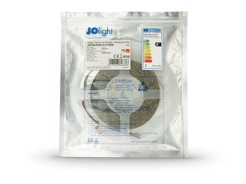 ** Caratteristiche Generali ** Applicazione: Per illuminazione Tempo di vita L70B50: 20000h Numero cicli di accensione: 10000 cicli Fattore di sopravvivenza: 1 Tipo nastro: Monocolore Colore Supporto: Bianco Tipo di led: smd 3528 n. Led al metro: 60 led/m Lunghezza max in cascata: 5m Rischio fotobiologico: Esente ** Caratteristiche di Illuminazione ** Colore: Bianco naturale Flusso Nastro Led: 514lm/m Flusso @ 50cm: 257lm CRI: 90 Angolo di emissione: 120° Warm-up (60%): 0.1s Fattore mantenimento flusso:0.97 Uniformità colore (SDCM): 6 ** Caratteristiche Elettriche ** Classe energetica: F Potenza Nastro Led: 4.8W/m Potenza 50cm: 2.4W Potenza unità minima: 0.24W Tens. funzionamento DC: 12Vdc Dimmerabile: si Alimentatore: Esterno (non incluso) ** Caratteristiche Sorgente Luminosa ** Temp. Colore: 4000K ** Caratteristiche Meccaniche ** Lunghezza nastro: 5m N. Led/taglio: 3 Lunghezza taglio minima: 50mm Larghezza: 8mm Spessore: 1.4mm Altezza: 2mm Fissaggio: Biadesivo 3M Grado di protezione: IP20 Tipo di protezione: Nessuno Connessioni: Cavo libero ** Caratteristiche Termiche ** Temp. di funzionamento: -10 / 40°C