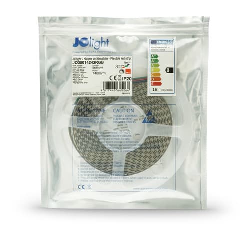 ** Caratteristiche Generali ** Applicazione: Decorativa Tempo di vita L70B50: 20000h Numero cicli di accensione: 10000 cicli Tipo nastro: RGB Colore Supporto: Bianco Tipo di led: smd 3535 n. Led al metro: 120 led/m Lunghezza max in cascata: 5m Rischio fotobiologico: Esente ** Caratteristiche di Illuminazione ** Colore: RGB Flusso Nastro Led: 740lm/m Flusso: R:180lm/m G:450lm/m B:115lm/m Lunghezza d'onda: R:624nm G:525nm B:470nm Angolo di emissione: 120° Warm-up (60%): 0.1s ** Caratteristiche Elettriche** Potenza Nastro Led: 14.4W/m Potenza unità minima: 0.72W Tens. funzionamento DC: 24Vdc Dimmerabile: si Alimentatore: Esterno (non incluso) ** Caratteristiche Meccaniche ** Lunghezza nastro: 5m N. Led/taglio: 6 Lunghezza taglio minima: 50mm Larghezza: 8mm Spessore: 1.9mm Fissaggio: Biadesivo 3M Grado di protezione: IP20 Tipo di protezione: Nessuno Connessioni: Cavo libero ** Caratteristiche Termiche ** Temp. di funzionamento: -10 / 40°C