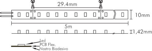 ** Caratteristiche Generali ** Tempo di vita L70B50: 20000h Numero cicli di accensione: 10000 cicli Fattore di sopravvivenza: 0.9 Tipo nastro: CCT Regolabile Colore Supporto: Bianco Tipo di led: smd 3528 n. Led al metro: 120 led/m Lunghezza max in cascata: 5m Rischio fotobiologico: Esente ** Caratteristiche di Illuminazione ** Colore: CCT Regolabile Flusso Nastro Led: 2390lm/m Flusso @ 50cm: 2390lm CRI: 80 Angolo di emissione: 120° Warm-up (60%): 0.1s Fattore mantenimento flusso: 0.96 Uniformità colore (SDCM): 6 ** Caratteristiche Elettriche ** Classe energetica: E Potenza Nastro Led: 19.2W/m Potenza 50cm: 19.2W Potenza unità minima: 0.96W Tens. funzionamento DC: 24Vdc Dimmerabile: si Alimentatore: Esterno (non incluso) ** Caratteristiche Sorgente Luminosa ** Temp. Colore: 3000‑6000K ** Caratteristiche Meccaniche ** Lunghezza nastro: 5m N. Led/taglio: 6 Lunghezza taglio minima: 50mm Larghezza: 10mm Spessore: 1.42mm Altezza: 2mm Fissaggio: Biadesivo 3M Grado di protezione: IP20 Tipo di protezione: Nessuno Connessioni: Cavo libero ** Caratteristiche Termiche ** Temp. di funzionamento: -10 / 40°C