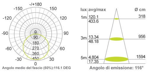 ** Caratteristiche Generali ** Applicazione: Per illuminazione Tempo di vita L70B50: 50000h Numero cicli di accensione: 10000 cicli Fattore di sopravvivenza: 1 Tipo nastro: Monocolore Colore Supporto: Bianco Tipo di led: smd 2835 0.5W n. Led al metro: 112 led/m Lunghezza max in cascata: 5m Rischio fotobiologico: Esente ** Caratteristiche di Illuminazione ** Colore: Bianco freddo Flusso Nastro Led: 2751lm/m Flusso @ 50cm: 1375lm CRI: 94 Angolo di emissione: 120° Warm-up (60%): 0.1s Fattore mantenimento flusso: 0.97 Uniformità colore (SDCM): 6 ** Caratteristiche Elettriche ** Classe energetica: E Potenza Nastro Led: 23W/m Potenza 50cm: 11.5W Potenza unità minima: 1.6422W Tens. funzionamento DC: 24Vdc Dimmerabile: si Alimentatore: Esterno (non incluso) ** Caratteristiche Sorgente Luminosa ** Temp. Colore: 6000K ** Caratteristiche Meccaniche ** Lunghezza nastro: 5m N. Led/taglio: 8 Lunghezza taglio minima: 71.4mm Larghezza: 10mm Spessore: 1.3mm Altezza: 2mm Fissaggio: Biadesivo 3M Grado di protezione: IP20 Tipo di protezione: Nessuno Connessioni: Cavo libero ** Caratteristiche Termiche ** Temp. di funzionamento: -10 / 40°C