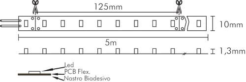 ** Caratteristiche Generali ** Tempo di vita L70B50: 20000h Numero cicli di accensione: 10000 cicli Fattore di sopravvivenza: 0.9 Tipo nastro: Monocolore Colore Supporto: Bianco Tipo di led: smd 2835 0.5W n. Led al metro: 64 led/m Lunghezza max in cascata: 5m Rischio fotobiologico: Esente ** Caratteristiche di Illuminazione ** Colore: Bianco naturale Flusso Nastro Led: 1300lm/m Flusso @ 50cm: 650lm CRI: 94 Angolo di emissione: 120° Warm-up (60%): 0.1s Fattore mantenimento flusso: 0.96 Uniformità colore (SDCM): 6 ** Caratteristiche Elettriche ** Classe energetica: F Potenza Nastro Led: 12W/m Potenza 50cm: 6W Potenza unità minima: 1.5W Tens. funzionamento DC: 24Vdc Dimmerabile: si Alimentatore: Esterno (non incluso) ** Caratteristiche Sorgente Luminosa ** Temp. Colore: 4000K ** Caratteristiche Meccaniche ** Lunghezza nastro: 5m Lunghezza taglio minima: 125mm Larghezza: 10mm Altezza: 2mm Fissaggio: Biadesivo 3M Grado di protezione: IP20 Tipo di protezione: Nessuno Connessioni: Cavo libero ** Caratteristiche Termiche ** Temp. di funzionamento: -10 / 40°C