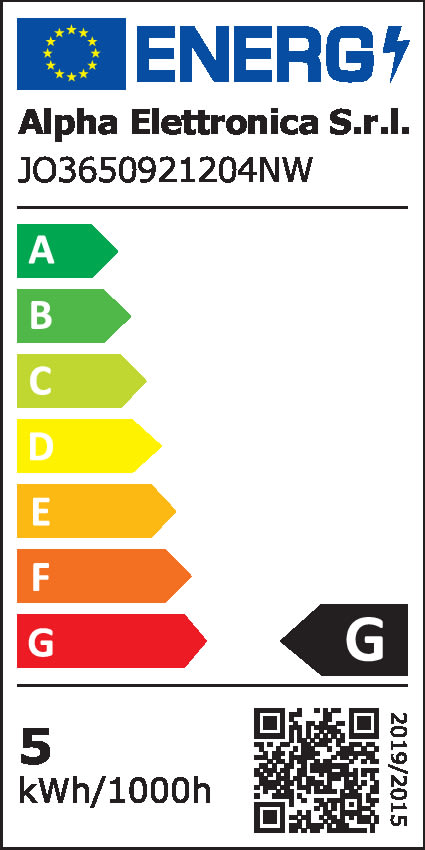 ** Caratteristiche Generali ** Applicazione: Per illuminazione Tempo di vita L70B50: 50000h Numero cicli di accensione: 10000 cicli Fattore di sopravvivenza: 1 Tipo nastro: Monocolore Colore Supporto: Bianco Tipo di led: smd 2835 0.2W n. Led al metro: 120 led/m Lunghezza max in cascata: 5m Rischio fotobiologico: Esente ** Caratteristiche di Illuminazione ** Colore: Bianco naturale Flusso Nastro Led: 770lm/m Flusso @ 50cm: 385lm CRI: 90 Angolo di emissione: 120° Warm-up (60%): 0.1s Fattore mantenimento flusso: 0.97 Uniformità colore (SDCM): 6 ** Caratteristiche Elettriche ** Classe energetica: G Potenza Nastro Led: 9.6W/m Potenza 50cm: 4.8W Potenza unità minima: 0.24W Tens. funzionamento DC: 12Vdc Dimmerabile: si Alimentatore: Esterno (non incluso) ** Caratteristiche Sorgente Luminosa ** Temp. Colore: 4000K ** Caratteristiche Meccaniche ** Lunghezza nastro: 5m N. Led/taglio: 3 Lunghezza taglio minima: 25mm Larghezza: 8mm Spessore: 2.6mm Altezza: 2mm Fissaggio: Biadesivo 3M Grado di protezione: IP65 Tipo di protezione: Resina Connessioni: Cavo libero ** Caratteristiche Termiche ** Temp. di funzionamento: -10 / 40°C