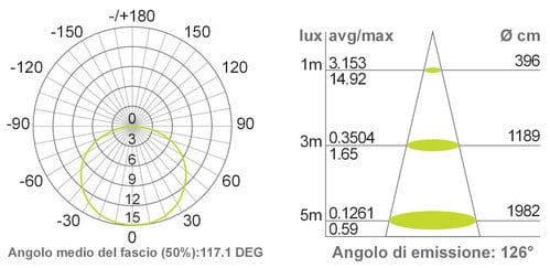 ** Caratteristiche Generali ** Applicazione: Per illuminazione Tempo di vita L70B50: 50000h Numero cicli di accensione: 10000 cicli Fattore di sopravvivenza: 1 Tipo nastro: Monocolore Colore Supporto: Bianco Tipo di led: smd 2835 0.2W n. Led al metro: 120 led/m Lunghezza max in cascata: 5m Rischio fotobiologico: Esente ** Caratteristiche di Illuminazione ** Colore: Bianco caldo Flusso Nastro Led: 740lm/m Flusso @ 50cm: 370lm CRI: 90 Angolo di emissione: 120° Warm-up (60%): 0.1s Fattore mantenimento flusso: 0.97 Uniformità colore (SDCM): 6 ** Caratteristiche Elettriche ** Classe energetica: G Potenza Nastro Led: 9.6W/m Potenza 50cm: 4.8W Potenza unità minima: 0.24W Tens. funzionamento DC: 12Vdc Dimmerabile: si Alimentatore: Esterno (non incluso) ** Caratteristiche Sorgente Luminosa ** Temp. Colore: 3000K ** Caratteristiche Meccaniche ** Lunghezza nastro: 5m N. Led/taglio: 3 Lunghezza taglio minima: 25mm Larghezza: 8mm Spessore: 2.6mm Altezza: 2mm Fissaggio: Biadesivo 3M Grado di protezione: IP65 Tipo di protezione: Resina Connessioni: Cavo libero ** Caratteristiche Termiche ** Temp. di funzionamento: -10 / 40°C