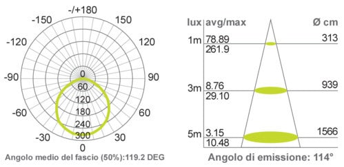 Striscia LED alimentata direttamente a 230Vac, non necessita di alcun driver. Il tubo siliconico IP65 presenta nel retro il biadesivo 3M per una facile installazione. ** Caratteristiche Generali ** Tempo di vita L70B50: 20000h Numero cicli di accensione: 10000 cicli Fattore di sopravvivenza: 0.9 Tipo nastro: Monocolore Colore Supporto: Bianco Tipo di led: COB n. Led al metro: 480 led/m Lunghezza max in cascata: 100m Rischio fotobiologico: Esente ** Caratteristiche di Illuminazione ** Colore: Bianco caldo Flusso Nastro Led: 900lm/m Flusso @ 50cm: 450lm CRI: 90 Warm-up (60%): 0.1s Fattore mantenimento flusso: 0.96 Uniformità colore (SDCM): 6 ** Caratteristiche Elettriche ** Classe energetica: G Potenza Nastro Led: 12W/m Potenza 50cm: 6W Potenza unità minima: 1.2W Fattore di potenza PF: 0.9 Fattore di sfasamento DF: 0.5 Tens. funzionamento AC: 230Vac Tolleranza d'ingresso: ±10% Frequenza: 50Hz Dimmerabile: si ** Caratteristiche Sorgente Luminosa ** Temp. Colore: 3000K ** Caratteristiche Meccaniche ** Lunghezza nastro: 20m Lunghezza taglio minima: 100mm Larghezza: 12mm Spessore: 5mm Altezza: 20000mm Fissaggio: Biadesivo 3M Grado di protezione: IP65 Resistenza agli urti: IK08 Tipo di protezione: Tubo siliconico Connessioni: Spina ** Caratteristiche Termiche ** Temp. di funzionamento: -10 / 40°C La striscia deve essere collegata direttamente alla rete 230V 50Hz. Si raccomanda l’installazione in posizione inaccessibile a persone o animali. Fusibile di protezione in testa per la protezione dell’intera striscia.