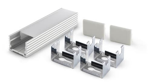 ** Caratteristiche generali ** Kit composto da: -n. 1 profilo di alluminio da 2m, -n. 1 copertura da 2m -n. 2 terminali di chiusura in plastica -n. 4 graffette di fissaggio ** Caratteristiche Elettriche ** Potenza dissipabile (35°C): 19W/m ** Caratteristiche Meccaniche ** Lunghezza profilo: 2m Larghezza: 18.4mm Larghezza interna: 12.4mm Altezza: 13mm Grado di protezione: IP20 Materiale corpo: Alluminio Colore corpo: Naturale Diffusore: Policarbonato opaco ** Attenzione ** La copertura in PMMA è più resistente alle temperature e ai raggi UV rispetto alla copertura in Policarbonato (PC). Il profilo illustrato è un componente. Il suo corretto funzionamento con nastri led o moduli led dipende da importanti requisiti di installazione e dimensionamento. La potenza dissipabile è stata calcolata considerando una temperatura ambiente non superiore a 35°C in aria. Condizioni di installazione differenti devono essere opportunamente verificate da personale tecnico. Utilizzare la copertura solo con nastri led IP20. Alpha Elettronica declina ogni responsabilità per danni o malfunzionamenti derivati da un uso inappropriato del profilo.