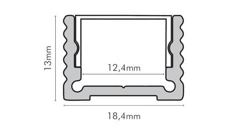 ** Caratteristiche generali ** Composto da: -n. 1 profilo di alluminio da 2m, -n. 1 copertura da 2m ** Caratteristiche Elettriche ** Potenza dissipabile (35°C): 19W/m ** Caratteristiche Meccaniche ** Lunghezza profilo: 2m Larghezza: 18.4mm Larghezza interna: 12.4mm Altezza: 13mm Grado di protezione: IP20 Materiale corpo: Alluminio Colore corpo: Naturale Diffusore: Policarbonato trasp. ** Attenzione ** La copertura in PMMA è più resistente alle temperature e ai raggi UV rispetto alla copertura in Policarbonato (PC). Il profilo illustrato è un componente. Il suo corretto funzionamento con nastri led o moduli led dipende da importanti requisiti di installazione e dimensionamento. La potenza dissipabile è stata calcolata considerando una temperatura ambiente non superiore a 35°C in aria. Condizioni di installazione differenti devono essere opportunamente verificate da personale tecnico. Utilizzare la copertura solo con nastri led IP20. Alpha Elettronica declina ogni responsabilità per danni o malfunzionamenti derivati da un uso inappropriato del profilo.