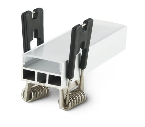 Clip di fissaggio a molla adatto per profilo JO380/088-12 ** Caratteristiche Meccaniche ** Tipo: Molla Fissaggio: A scorrimento, Tramite viti Montaggio: Incasso Materiale corpo: Alluminio anodizzato Colore corpo: Naturale
