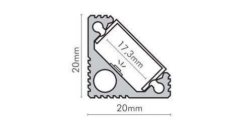 ** Caratteristiche generali ** Composto da: -n. 1 profilo di alluminio -n. 1 copertura ** Caratteristiche Elettriche ** Potenza dissipabile (35°C): 25W/m ** Caratteristiche Meccaniche ** Lunghezza profilo: 2m Larghezza: 20mm Larghezza interna: 17.3mm Altezza: 20mm Grado di protezione: IP20 Materiale corpo: Alluminio anodizzato Colore corpo: Naturale Diffusore: Policarbonato opaco ** Attenzione ** La copertura in PMMA è più resistente alle temperature e ai raggi UV rispetto alla copertura in Policarbonato (PC). Il profilo illustrato è un componente. Il suo corretto funzionamento con nastri led o moduli led dipende da importanti requisiti di installazione e dimensionamento. La potenza dissipabile è stata calcolata considerando una temperatura ambientenon superiore a 35°C in aria. Condizioni di installazione differenti devono essere opportunamente verificate da personale tecnico. Utilizzare la copertura solo con nastri led IP20. Alpha Elettronica declina ogni responsabilità per danni o malfunzionamenti derivati da un uso inappropriato del profilo.