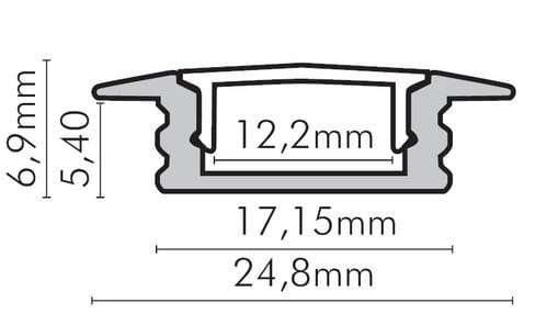 ** Caratteristiche generali ** Kit composto da: -n. 1 profilo di alluminio da 2m, -n. 1 copertura da 2m -n. 2 terminali di chiusura in plastica -n. 4 graffette di fissaggio ** Caratteristiche Elettriche ** Potenza dissipabile (35°C): 15W/m ** Caratteristiche Meccaniche ** Lunghezza profilo: 2m Larghezza: 24.8mm Larghezza interna: 12.2mm Altezza: 6.9mm Peso alluminio al metro: 128g/m Peso cover al metro: 31g/m Materiale corpo: Alluminio anodizzato Colore corpo: Naturale Diffusore: Policarbonato opaco ** Attenzione ** La copertura in Policarbonato (PC) è più sensibile alle temperature e ai raggi UV rispetto alla copertura in PMMA. Il profilo illustrato è un componente. Il suo corretto funzionamento con nastri led o moduli led dipende da importanti requisiti di installazione e dimensionamento. La potenza dissipabile è stata calcolata considerando una temperatura ambiente non superiore a 35°C in aria. Condizioni di installazione differenti devono essere opportunamente verificate da personale tecnico. Utilizzare la copertura solo con nastri led IP20. Alpha Elettronica declina ogni responsabilità per danni o malfunzionamenti derivati da un uso inappropriato del profilo.