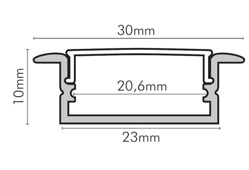 ** Caratteristiche generali ** Kit composto da: -n. 1 profilo di alluminio da 2m, -n. 1 copertura da 2m -n. 2 terminali di chiusura in plastica -n. 4 graffette di fissaggio ** Caratteristiche Elettriche ** Potenza dissipabile (35°C): 19W/m ** Caratteristiche Meccaniche ** Lunghezza profilo: 2m Larghezza: 28mm Larghezza interna: 20.6mm Altezza: 10.03mm Materiale corpo: Alluminio anodizzato Colore corpo: Naturale Diffusore: Policarbonato opaco ** Attenzione ** La copertura in Policarbonato (PC) è più sensibile alle temperature e ai raggi UV rispetto alla copertura in PMMA. Il profilo illustrato è un componente. Il suo corretto funzionamento con nastri led o moduli led dipende da importanti requisiti di installazione e dimensionamento. La potenza dissipabile è stata calcolata considerando una temperatura ambiente non superiore a 35°C in aria. Condizioni di installazione differenti devono essere opportunamente verificate da personale tecnico. Utilizzare la copertura solo con nastri led IP20. Alpha Elettronica declina ogni responsabilità per danni o malfunzionamenti derivati da un uso inappropriato del profilo.