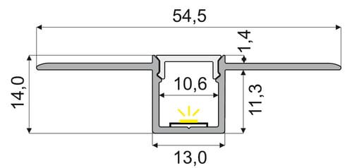 ** Caratteristiche generali ** Kit composto da: -n. 1 profilo di alluminio da 3m, -n. 1 copertura da 3m -n. 2 terminali di chiusura in plastica Offre un alto grado di dissipazione unitamente alla possibilità di realizzare installazioni dal design elegante e moderno. Si consiglia l'impiego della serie di nastri con biadesivo JO350 disponibile nelle varie potenze. La copertura è realizzata tramite un profilo in policarbonato (PC) opaco. ** Caratteristiche Elettriche ** Potenza dissipabile (35°C): 23W/m ** Caratteristiche Meccaniche ** Lunghezza profilo: 3m Larghezza: 54.51mm Larghezza interna: 10.6mm Altezza: 14mm Peso alluminio al metro: 172g/m Peso cover al metro: 26g/m Grado di protezione: IP20 Materiale corpo: Alluminio Colore corpo: Naturale Diffusore: Policarbonato opaco ** Attenzione ** Il profilo illustrato è un componente. Il suo corretto funzionamento con nastri led o moduli led dipende da importanti requisiti di installazione e dimensionamento. La potenza dissipabile è stata calcolata considerando una temperatura ambiente non superiore a 35°C in aria. Condizioni di installazione differenti devono essere opportunamente verificate da personale tecnico. Utilizzare la copertura solo con nastri led IP20. Alpha Elettronica declina ogni responsabilità per danni o malfunzionamenti derivati da un uso inappropriato del profilo.