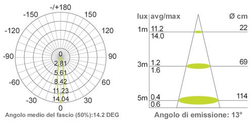 Faretto spot da incasso rotondo pensato per realizzare decorazioni e punti luce. Sono adatti per uso interno in installazioni da controsoffitto. Integrano all'interno un Led ad alta luminosità da 5mm con angolo di emissione stretto. Il fascio di luce concentrato consente di realizzare punti luce ed effetti tipo cielo stellato. Grazie alla resistenza interna possono essere alimentati a 12Vdc in parallelo. ** Caratteristiche Generali ** Tempo di vita L70B50: 30000h Numero cicli di accensione: 15000 cicli Tipo di led: 5mm Numero Led: 1 Rischio fotobiologico: Esente ** Caratteristiche di Illuminazione ** Colore: Bianco freddo Flusso: 30lm CRI: 80 Angolo di emissione: 15° Starting time: 0.2s ** Caratteristiche Elettriche ** Potenza: 0.3W Tens. funzionamento DC: 12Vdc (11.5‑12.5Vdc) Dimmerabile: si Alimentatore: Esterno (non incluso) ** Caratteristiche Sorgente Luminosa ** Temp. Colore: 6000K ** Caratteristiche Meccaniche ** Altezza: 15.5mm Diametro: ø18mm Fissaggio: Incasso con clip Montaggio: Incasso Foro incasso: ø13mm Grado di protezione: IP20 Materiale corpo: Plastica Colore corpo: Bianco Cornice: Plastica Connessioni: Connettori e cavetti inclusi Lunghezza cavo: 0.15m Orientabile: no ** Caratteristiche Termiche ** Temp. di funzionamento: -10 / 40°C ** Attenzione: ** Limitazione di corrente ottenuta tramite resistenza integrata. Tensioni maggiori di 12,5Vdc danneggiano il prodotto. Le clip laterali in plastica sono sottili per permettere la flessione. Sforzi eccessivi possono danneggiare le clip. Prestare attenzione durante l'installazione.