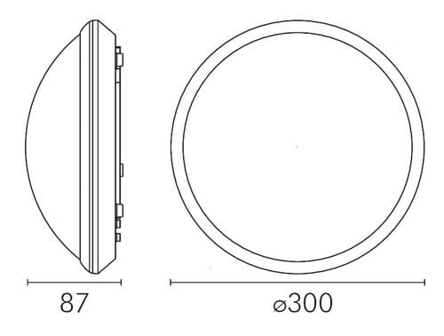 Plafoniera led con sensore di movimento a microonde. Funziona anche da lampada d'emergenza, grazie alla batteria integrata da 1500mA garantisce una autonomia di 5 ore in caso di assenza di rete domestica. Installazione a plafone o a parete in applicazioni interne o esterne. Non installare in zone direttamente esposte agli agenti atmosferici. Emissione diffusa. Base bianca in plastica e diffusore in policarbonato opale con montaggio a scatto. ** Caratteristiche Generali ** Tempo di vita L70B50: 30000h Numero cicli di accensione: 15000 cicli Rischio fotobiologico: Esente ** Caratteristiche di Illuminazione ** Colore: Bianco naturale Flusso: 1200lm CRI: 80 Angolo di emissione: 120° ** Caratteristiche Elettriche ** Potenza: 16W Tens. funzionamento AC: 230Vac Tolleranza d'ingresso: ±10% Frequenza: 50-60Hz Dimmerabile: no Classe isolamento: I Alimentatore: Integrato ** Caratteristiche Sorgente Luminosa ** Temp. Colore: 4000K ** Caratteristiche Meccaniche ** Altezza: 87mm Diametro: ø300mm Fissaggio: Tramite viti Montaggio: A soffitto, A parete Grado di protezione: IP66 Materiale corpo: Plastica Colore corpo: Bianco Diffusore: Policarbonato opaco Connessioni: Morsetti a pressione Tipo Controllo: Funzione emergenza, Sensore microonde Orientabile: no ** Regolazioni ** Periodo di accensione: 10s - 12min ** Caratteristiche Termiche ** Temp. di funzionamento: -10 / 40°C ** Caratteristiche sensore di movimento integrato: ** Rilevatore di movimento a microonde che emette onde elettro-magnetiche ad alta frequenza (5,8GHz) e riceve il loro eco. Spegnimento regolabile: 10sec-12min Campo di rilevamento: 360° Altezza d'installazione: 1,5-3,5m(Parete), 2-4m (Soffitto) Range di movimento: 5-15m(Parete), raggio 2-8m (Soffitto) ** Caratteristiche lampada d'emergenza: ** Batteria al litio inclusa: 3,7V 1500mAh Consumo in emergenza: 1,2W Flusso in emergenza: 80lm Autonomia: 5h ** Attenzione ** Alimentazione in corrente costante. Non modificare o cambiare l'alimentatore integrato. Alimentatori errati danneggiano il prodotto.