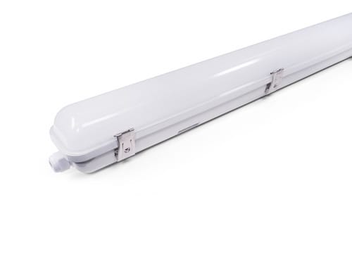 ** Caratteristiche Generali ** Tempo di vita L70B50: 30000h Numero cicli di accensione: 15000 cicli Tipo di led: smd 2835 Rischio fotobiologico: Esente ** Caratteristiche di Illuminazione ** Colore: Bianco naturale Flusso: 3750lm CRI: 80 Angolo di emissione: 120° ** Caratteristiche Elettriche ** Potenza: 30W Fattore di potenza PF: 0.9 Tens. funzionamento AC: 230Vac (220‑240Vac) Tolleranza d'ingresso: -10% +6% Frequenza: 50Hz Dimmerabile: no Classe isolamento: I Alimentatore: Integrato ** Caratteristiche Sorgente Luminosa ** Tensione Led: 54Vdc Corrente Led: 500mA Tipo Alimentazione: Corrente Costante Temp. Colore: 4000K ** Caratteristiche Meccaniche ** Lunghezza: 1565mm Larghezza: 90mm Altezza: 88mm Fissaggio: Clip Incluse Montaggio: A soffitto Grado di protezione: IP65 Resistenza agli urti: IK08 Materiale corpo: Plastica Colore corpo: Bianco Diffusore: Policarbonato opaco Connessioni: Morsetti a vite ** Caratteristiche Termiche ** Temp. di funzionamento: -10 / 40°C