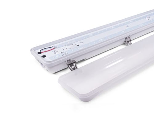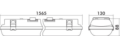 ** Caratteristiche Generali ** Tempo di vita L70B50: 30000h Numero cicli di accensione: 15000 cicli Tipo di led: smd 2835 Rischio fotobiologico: Esente ** Caratteristiche di Illuminazione ** Colore: Bianco naturale Flusso: 7500lm CRI: 80 Angolo di emissione: 120° ** Caratteristiche Elettriche ** Potenza: 60W Fattore di potenza PF: 0.9 Tens. funzionamento AC: 230Vac (220‑240Vac) Tolleranza d'ingresso: -10% +6% Frequenza: 50Hz Dimmerabile: no Classe isolamento: I Alimentatore: Integrato ** Caratteristiche Sorgente Luminosa ** Tensione Led: 54Vdc Corrente Led: 1050mA Tipo Alimentazione: Corrente Costante Temp. Colore: 4000K ** Caratteristiche Meccaniche ** Lunghezza: 1565mm Larghezza: 130mm Altezza: 88mm Fissaggio: Clip Incluse Montaggio: A soffitto Grado di protezione: IP65 Resistenza agli urti: IK08 Materiale corpo: Plastica Colore corpo: Bianco Diffusore: Policarbonato opaco Connessioni: Morsetti a vite ** Caratteristiche Termiche ** Temp. di funzionamento: -10 / 40°C